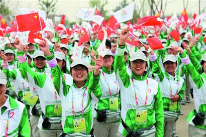 ????為更好地迎接2014青島世園會,營造良好的迎世園志愿服務氛圍,志愿者部陸續(xù)開展了群眾性迎世園活動,其中志愿信使團活動邀請了奧運冠軍孫楊、焦劉洋,雪龍?zhí)柨瓶既藛T等各界熱心人士成為世園會“志愿信使”,將青島舉辦2014世園會的消息傳遞到世界各地;“迎世園-我的世園志愿暢想”活動陸續(xù)走進全市中小學及有關行業(yè),廣泛征集了社會各界對世園會及志愿者工作的美好寄語;前期先后邀請了世園會形象大使郭川、姜馨田、黃渤等人拍攝志愿者公益宣傳片,播放后取得了良好社會反響。