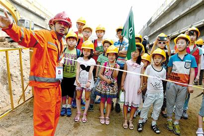 ????活動(dòng)主辦方將暑期親子活動(dòng)的首站定在了參觀青島地鐵 2號(hào)線海安路施工現(xiàn)場(chǎng)。大多數(shù)孩子是第一次近距離地接觸地鐵施工現(xiàn)場(chǎng),孩子們感慨道:“原來(lái),爸爸是在這樣的環(huán)境下工作的??!”