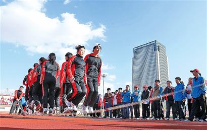 ????■昨日,青島即發(fā)集團(tuán)舉辦了一場(chǎng)別開生面的農(nóng)民工運(yùn)動(dòng)會(huì),來(lái)自該企業(yè)的萬(wàn)余名農(nóng)民工參加了“我背媳婦”、“協(xié)力跳繩”、“舞動(dòng)蛟龍”等30多個(gè)項(xiàng)目的比賽和表演,盡情享受運(yùn)動(dòng)帶來(lái)的快樂。