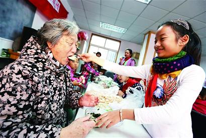 ????方娜稱,在學校周圍的幾個社區(qū),兒女不在身邊的空巢老人有將近50名。“學生放學的時候,經(jīng)常能在學校門口見到幾名空巢老人坐在馬扎上,呆呆地看著孩子們跟著家長離開,我們知道這些老人在想念不在身邊的孫子孫女,看著就讓人覺得心疼?!狈侥确Q,平時老師們都會帶著那些家長還沒來的學生們,陪空巢老人們聊聊天。這些老人的孫子孫女很多都在外地,老人可能只有逢年過節(jié)才能看看孫子孫女。昨天下午,經(jīng)過學校領(lǐng)導批準和學生家長同意,6名志愿者老師組織了小學5年級42名學生到社區(qū)陪著空巢老人包餛飩吃,讓老人感受“孫子孫女”陪在身邊的快樂。