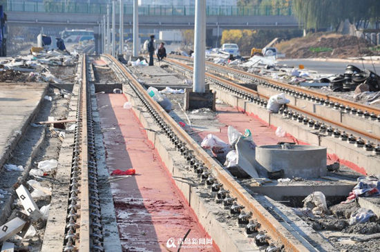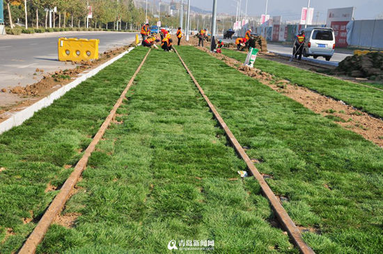????距離12月20日試跑僅剩一個(gè)月,城陽(yáng)有軌電車鋪軌工程仍在緊張進(jìn)行中。記者昨日在現(xiàn)場(chǎng)看到,全長(zhǎng)8.77公里的軌道線上施工進(jìn)度差異很大,天安數(shù)碼城段目前已開(kāi)始栽植草坪,進(jìn)入了最后收尾階段,而其余絕大部分路段目前仍有大量工程未完工。