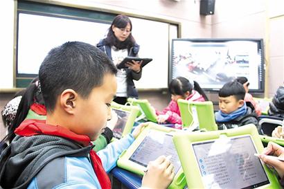 ????一所學(xué)校教師執(zhí)教,其教學(xué)內(nèi)容可以即時推送,讓另一所學(xué)校師生共享,這種借助信息技術(shù)的傳遞課堂成為島城中小學(xué)教學(xué)改革的時尚。圖為太平路小學(xué)與定陶路小學(xué)專遞課堂上,太平路小學(xué)教師安婷執(zhí)教專題略讀導(dǎo)學(xué)課,可以同步推送到定陶路小學(xué)王老師班學(xué)生的電子書包里,實現(xiàn)了異校間學(xué)習(xí)內(nèi)容即時推送,真正實現(xiàn)了校際間學(xué)生學(xué)習(xí)內(nèi)容的資源同步共享。