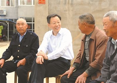 ????21日下午,村民岳慶龍家門口,一邊是麥田,一邊是葡萄架,李學(xué)勇和鄉(xiāng)親們?cè)诜壳暗目盏厣蠂聛?lái)話家常。鄉(xiāng)親們暢所欲言,既談村里的新變化,又提出意見(jiàn)建議。