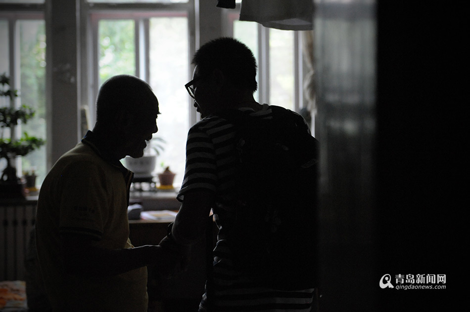 ????圖為姜老和記者交流。由于年過90,老人耳聾眼花,記者跟他交流時需要湊到他耳朵前大聲說話,他才能聽清楚。(孫志文 攝)