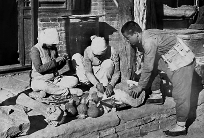 根據(jù)地民兵在連接地雷。圖片來(lái)源:北京日?qǐng)?bào)