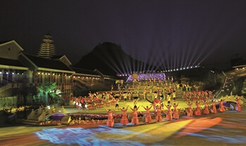 ????晚8點,《迷歌初遇》、《好景相伴》、《紅崖天書》、《夢回大明》、《終成眷屬》……《阿依朵》的故事一幕幕上演,觀眾們時而歡笑,時而歡呼,時而感嘆……掌聲一陣高過一陣。(盧維 田歌 文/圖)
