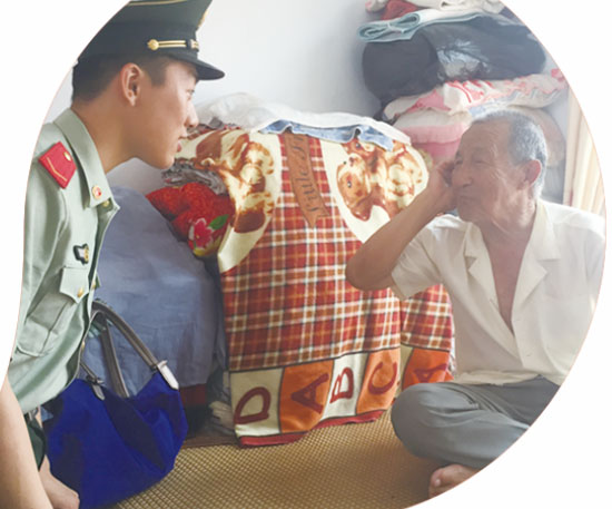 ????“我入伍的時候,就你們這么大,十八九歲?!?8歲高齡的徐世榮坐在自家的炕頭上,看到前來看望他的身著軍裝的小戰(zhàn)士們,一邊感嘆,一邊張羅著給大家倒水。雨后的天氣十分炎熱,我們來的時候不巧正碰上村里停電,風(fēng)扇無法運(yùn)轉(zhuǎn),幾位志愿者干脆拿起了扇子,湊到徐大爺跟前,邊為其扇風(fēng),邊聽他講述那段逝去的崢嶸歲月。