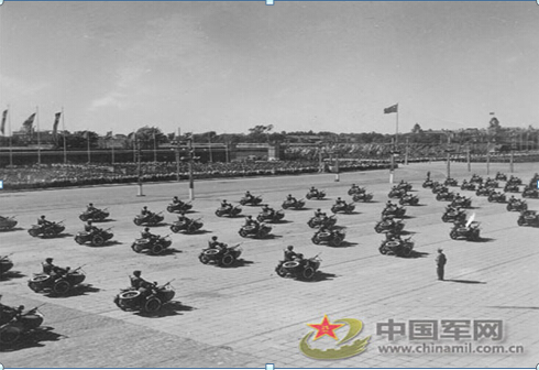 ????4、摩托化步兵方隊(duì)乘坐的并不是汽車,而是一百六十輛摩托車,煞是威風(fēng)。在閱兵部隊(duì)后面壓陣的,是鼓樂齊鳴的軍樂團(tuán)。