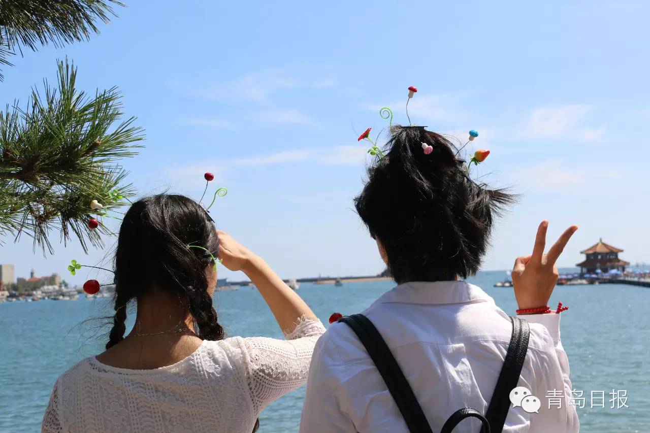 ????男女老少頭上都“長(zhǎng)”出了樹(shù)葉、卷卷草、豆芽、蘑菇、蘋(píng)果、櫻桃,簡(jiǎn)直是全民賣(mài)萌?。∏鄨?bào)君覺(jué)得棧橋景區(qū)就像植物園,滿(mǎn)眼都是些行走的花花草草!