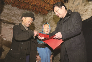 在和興村,慰問組一行先后走進貧困戶楊福琴,受災(zāi)戶葉本富、王德林和周興國家,山林詳細詢問了他們的生產(chǎn)生活情況,向他們及其家人致以節(jié)日的問候。山林要求,各級各有關(guān)部門一定要將困難群眾冷暖放在心上,千方百計為貧困群眾解決實際困難,確保他們過上一個歡樂祥和的春節(jié)。