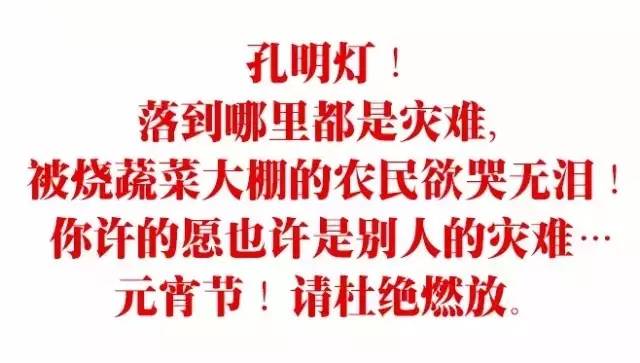 ????“我們在廣場放孔明燈,菜農(nóng)在大棚守著,一夜不敢回家。”“發(fā)生在別人身上是故事,發(fā)生在自己身上就是事故了!”看到這條朋友圈小編為之哀嘆:這是他們的所有家底和唯一生活來源,這個損失誰來賠?所以,今年不放孔明燈好嗎?