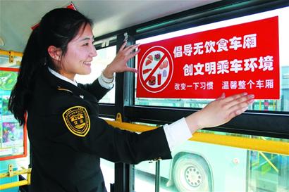 ????正在公開(kāi)征求意見(jiàn)的公交車乘坐新規(guī)中,提倡乘客不要在車廂內(nèi)食用異味食物。從去年8月開(kāi)始,交運(yùn)溫馨巴士就已陸續(xù)在市區(qū)部分線路百余輛公交車內(nèi)倡導(dǎo) “無(wú)飲食車廂”,實(shí)施后受到乘客的好評(píng)。昨日,交運(yùn)溫馨巴士所屬1000余輛公交車開(kāi)展倡導(dǎo)無(wú)飲食活動(dòng),為乘客營(yíng)造舒適、清潔的乘車環(huán)境。