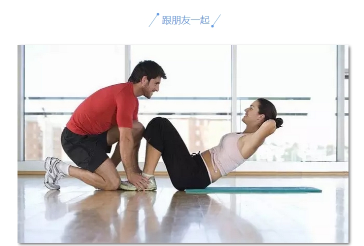 ????可以考慮跟朋友一起運(yùn)動(dòng),或每月參加一次一對(duì)一的訓(xùn)練課或健身課。作為女人,我們?cè)谟腥酥С謳椭那闆r下會(huì)感覺更好,這是我們的天性。而且跟別人一起運(yùn)動(dòng),你會(huì)有更強(qiáng)的責(zé)任感,在運(yùn)動(dòng)時(shí)也會(huì)更加專注。