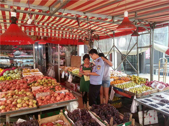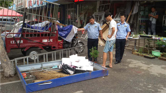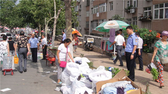 ????便民市場(chǎng)設(shè)置極大地方便了居民,但是市場(chǎng)冒市、暴市導(dǎo)致的臟亂差堵卻擾民不淺,也是執(zhí)法之重點(diǎn)。7月27至29日,寧夏路中隊(duì)一直在清理整治鎮(zhèn)江路市場(chǎng)和膠寧高架橋底市場(chǎng),共規(guī)范商戶26家,規(guī)范門(mén)頭10家,清理游商浮販24人次,兼顧拆除橫幅兩條;7月20日以來(lái),洛陽(yáng)路中隊(duì)一直派出執(zhí)法人員,以守崗和巡查相結(jié)合,持續(xù)清理開(kāi)平路早市,使得市場(chǎng)周邊秩序大為改觀;7月26日至29日,敦化路中隊(duì)每天出動(dòng)2車(chē)8人,分2次清理整治撫順路批發(fā)市場(chǎng),規(guī)范門(mén)頭占路經(jīng)營(yíng)30余處,新疆少數(shù)民族搭棚賣(mài)棗6處,暫扣帳蓬3個(gè),廣告燈箱8個(gè);大港中隊(duì)規(guī)范轄區(qū)舊貨市場(chǎng),整治占路經(jīng)營(yíng)30處,暫扣桌椅等12個(gè),拆除地鎖6個(gè),方便了路人行走。