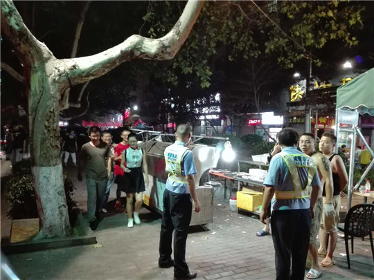 ????城管清燒烤,是夏季街頭巷尾的主題,讓我們略取7月27日一夜,看執(zhí)法中隊(duì)的“滅狼煙”行動(dòng)。登州路街道城管執(zhí)法中隊(duì)協(xié)同綜合執(zhí)法局機(jī)動(dòng)中隊(duì)共2車(chē)10人,從晚8點(diǎn)至23點(diǎn),開(kāi)始轄區(qū)露天燒烤第9次整治,繼續(xù)采取“殺回馬槍”的方式,暫扣燒烤爐3個(gè),桌椅10個(gè);遼寧路中隊(duì)圍繞處置群眾舉報(bào),組織2車(chē)10人,有針對(duì)性地展開(kāi)露天燒烤整治行動(dòng),暫扣燒烤爐具5個(gè);洛陽(yáng)路中隊(duì)1車(chē)5人,規(guī)范轄區(qū)占路燒烤12家,暫扣燒烤爐3個(gè),風(fēng)扇3個(gè);合肥路中隊(duì)出動(dòng)2車(chē)10人,規(guī)范轄區(qū)露天燒烤占路經(jīng)營(yíng),暫扣燒烤爐具3個(gè)、煤氣罐1個(gè)、桌凳一宗;延安路中隊(duì)對(duì)轄區(qū)內(nèi)夜間燒烤攤點(diǎn)及門(mén)頭業(yè)戶進(jìn)行清理整治,共沒(méi)收爐具3個(gè),占路經(jīng)營(yíng)餐桌6個(gè),馬扎12個(gè);四方中隊(duì)繼續(xù)推進(jìn)“守護(hù)清涼夏夜行動(dòng)”,出動(dòng)一輛執(zhí)法車(chē)6名執(zhí)法人員,圍繞群眾來(lái)信來(lái)訪,連續(xù)第7個(gè)夜晚進(jìn)行露天燒烤清理整治。