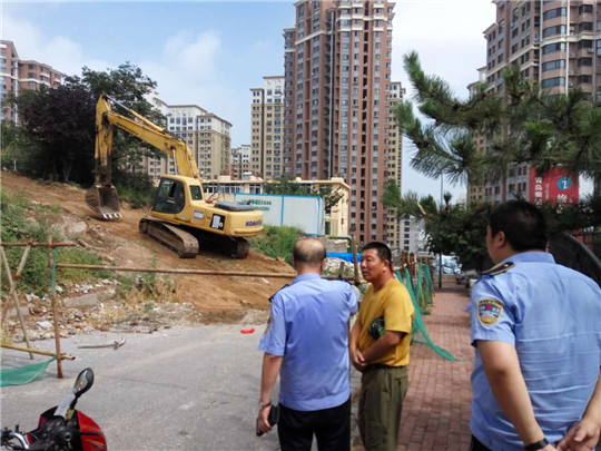 ????“綠樹(shù)藍(lán)天”是島城天然的景觀,政府為植樹(shù)造綠投入了大量人力物力財(cái)力,這邊建那邊毀令人深惡痛絕,很大程度上綜合執(zhí)法人員充當(dāng)了“守護(hù)神”。7月27日,延安路中隊(duì)接群眾舉報(bào)“尖山路38號(hào)工地有挖掘機(jī)挖掘山體破壞小樹(shù)和植被”,執(zhí)法人員立即趕赴現(xiàn)場(chǎng)制止了這起違法行為,并依法啟動(dòng)調(diào)查程序;7月28日,合肥路中隊(duì)針對(duì)群眾舉報(bào)恒苑小區(qū)毀綠種菜違法行為,出動(dòng)一車(chē)5人,配合街道社區(qū)進(jìn)行了整治,共清除毀綠種菜面積300余平方米;7月28日,浮山新區(qū)中隊(duì)加強(qiáng)與社區(qū)聯(lián)動(dòng),出動(dòng)執(zhí)法人員4人,對(duì)浮山后六小區(qū)57號(hào)樓在建圈占綠地24平方米的違建進(jìn)行了及時(shí)制止與拆除,7月29日,該中隊(duì)及時(shí)查處浮山后四小區(qū)43號(hào)樓西硬化綠地一處,暫扣施工工具3件;7月27日,群眾舉報(bào)“海逸景園1號(hào)樓綠化帶被破壞,不法業(yè)主用水泥塊硬化,準(zhǔn)備蓋建筑物”,即墨路中隊(duì)派出4名執(zhí)法人員,配合社區(qū)當(dāng)場(chǎng)進(jìn)行了制止,并對(duì)構(gòu)筑物進(jìn)行了拆除。