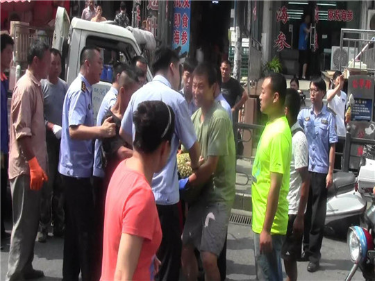 ????七月的青島,夏蟬唧唧,熱浪滾滾。城管執(zhí)法人員依然像往常一樣,沿街規(guī)范門(mén)頭業(yè)戶跨門(mén)經(jīng)營(yíng),依法取締無(wú)證商販的占路經(jīng)營(yíng)。7月22日,市北城管登州路中隊(duì)2輛執(zhí)法車(chē),載著10名執(zhí)法隊(duì)員對(duì)南山市場(chǎng)周邊和榮華小區(qū)的占路經(jīng)營(yíng)現(xiàn)象進(jìn)行整治,在炎炎烈日炙烤下,汗水已經(jīng)浸透了執(zhí)法人員的衣服,當(dāng)清理到榮華小區(qū)內(nèi)一個(gè)占路經(jīng)營(yíng)的菜攤前,無(wú)證攤販不服從執(zhí)法人員的管理,對(duì)占路經(jīng)營(yíng)的行為拒不改正,無(wú)奈之下,執(zhí)法人員只好依法對(duì)占路經(jīng)營(yíng)的物品進(jìn)行暫扣,攤主當(dāng)即辱罵和推搡執(zhí)法人員,并動(dòng)手搶奪被暫扣的物品,阻擾執(zhí)法人員的工作。旁邊的無(wú)證攤主也“聲援”這位暴力抗法的“同行”,場(chǎng)面十分混亂。整個(gè)過(guò)程中,城管執(zhí)法人員在宣傳法律的同時(shí),對(duì)攤主的過(guò)激行為保持冷靜克制,最終在執(zhí)法人員的堅(jiān)持下,暫扣了占路經(jīng)營(yíng)的物品,取締了該攤販的違法行為。城管執(zhí)法人員按照法律法規(guī)依法對(duì)違法犯罪行為進(jìn)行管理,執(zhí)法目的是提升城市市容環(huán)境秩序,為市民宜居生活保駕護(hù)航,希望得到市民的支持和理解。