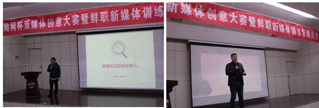 頒獎(jiǎng)典禮現(xiàn)場(chǎng)還邀請(qǐng)高海豹、陳大魚兩位自媒體大咖為大家進(jìn)行新媒體行業(yè)專題講座,帶同學(xué)們領(lǐng)略了一番新媒體的爆點(diǎn)和自媒體創(chuàng)業(yè)的知識(shí)分享。