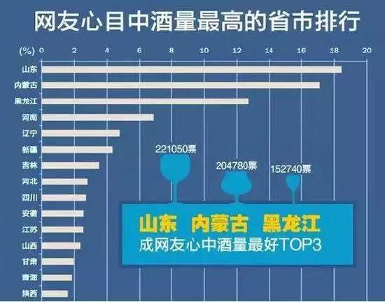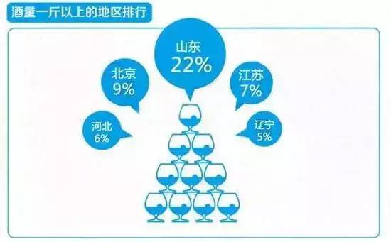 在《中國餐飲產(chǎn)業(yè)發(fā)展報(bào)告》中,山東以絕對優(yōu)勢輕松擊敗東北三省成為中國最能喝的城市。其中, 72%的山東網(wǎng)友年夜飯喝了超過三兩以上的白酒,35%的人喝了半斤以上。
