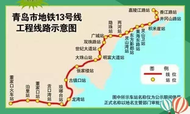 ????9號線一期:線路起自紅島街道辦科技館站,終于后金社區(qū),線路全長36.38km。