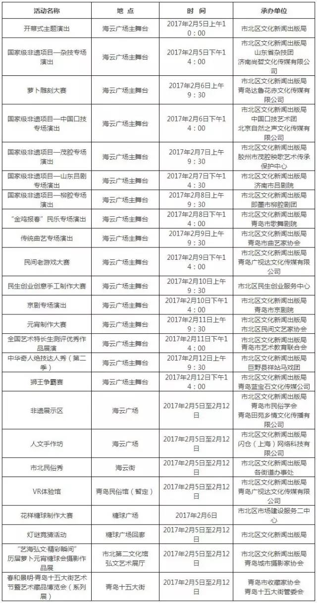????2月5日至2月12日(農(nóng)歷正月初九至正月十六),2017年青島蘿卜·元宵·糖球會(huì)就要和大家見面啦! 8天的時(shí)間里有哪些活動(dòng)呢? 一起跟小編瞧瞧吧!
