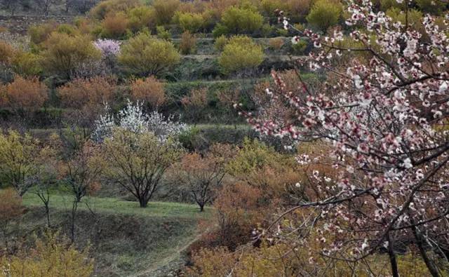 ????春天的九上溝,櫻桃、杏樹,花潮涌動,芬芳四溢,儼然一幅“濃涂淡抹總相宜”的水彩畫。