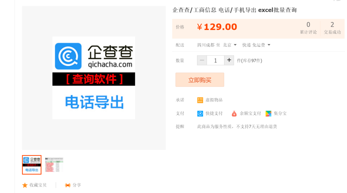 (企查查數(shù)據(jù)售賣淘寶截圖)