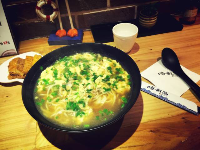 ????海鮮打鹵面,碗很大,一碗絕對吃的飽飽的。打鹵面里面有蕓豆,肉丁,蛤蜊和魷魚花。菜單上有一句話:湯比面貴,吃面前先喝湯。湯真的很鮮,喝上暖胃還很舒服。
