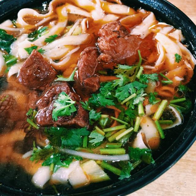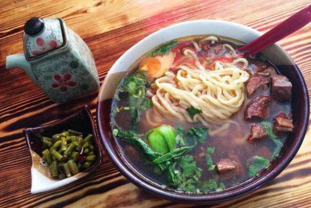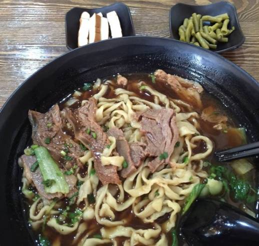 ????牛肉面、牛雜面和牛腩面都是他家的招牌了。最有特色的是他家的湯底,很濃郁,應(yīng)該是把土豆熬化了融在湯里面的,所以湯底顯得更加濃稠。配菜有酸豆角可以解膩還清口,各種牛肉入口即化。