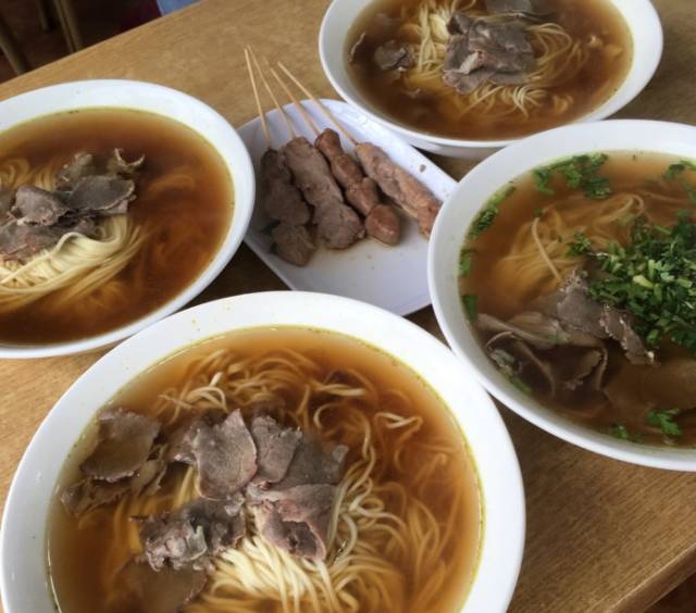 ????位置在前海利群的斜對面。他們家的面,湯面,涼面,拌面,一遍吃下來可以拍著胸脯說,菜單里就沒有不好吃的bug面。價位也是便宜的沒誰了,一般都是8-10元。這家素面面條口感清新,湯底也很棒。推薦牛肉刀削面~