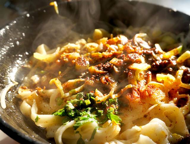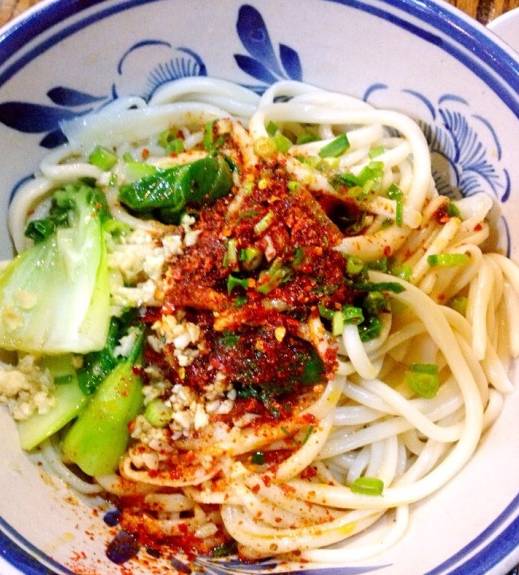 ????油潑棍棍面,手工拉面,有嚼頭,配上香香辣辣的油潑辣子,很是滿足,看著白白的面被辣子染色,食欲瞬間爆棚。