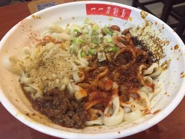 ????一一刀削面有很多家連鎖,最有名的應(yīng)該就是他家的油潑面了。粗的面條,吃起來蠻有嚼勁的,中午當(dāng)個工作餐還是可以的。