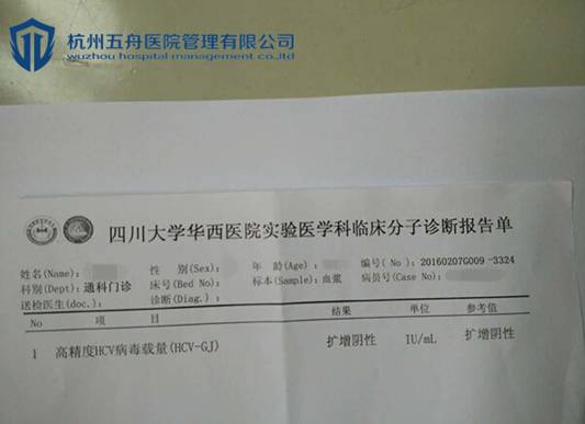 1月16日,陳先生收到了藥物并于當(dāng)天晚上就開始服用藥物。經(jīng)過四周的治療,陳先生再去醫(yī)院檢查發(fā)現(xiàn)病毒量已經(jīng)轉(zhuǎn)陰了。立即告知杭州五舟蔣醫(yī)生,蔣醫(yī)生建議繼續(xù)服用藥物至12周,以保證丙肝不復(fù)發(fā)。