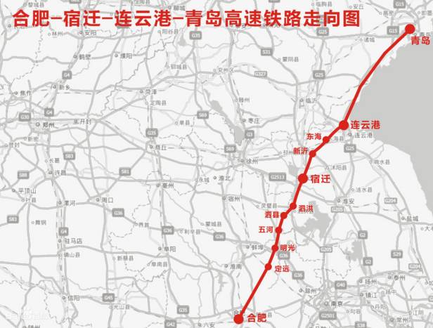 ????合青高鐵線路途經(jīng)安徽定遠(yuǎn)、明光、五河、泗縣、至江蘇泗洪、宿遷、新沂,在新沂接入徐連客運專線新沂南站至連云港接在建的青連鐵路延伸至青島,項目已將于2017年開工建設(shè)。