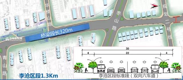 ????李滄路汾陽路將建夸環(huán)灣路高架橋工程已通過環(huán)評審批,將于2017年8月開工建設(shè),汾陽路高架橋長度約為300m,雙向6車道,設(shè)計車速為60km/h。