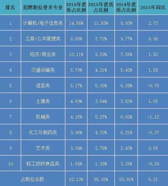 ????計(jì)算機(jī)/電子信息類(lèi)、經(jīng)濟(jì)類(lèi)等與“互聯(lián)網(wǎng)+”相關(guān)的專(zhuān)業(yè)需求依舊勢(shì)頭迅猛,漲幅已連續(xù)兩年保持在1%以上。