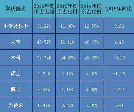 ????從市場(chǎng)反映來(lái)看,用人單位對(duì)博士人才的需求逐年遞增,2016年漲幅已達(dá)3.23個(gè)百分點(diǎn),越來(lái)越多從事新興產(chǎn)業(yè)的民營(yíng)企業(yè)產(chǎn)生了對(duì)博士等高層次人才的需求。