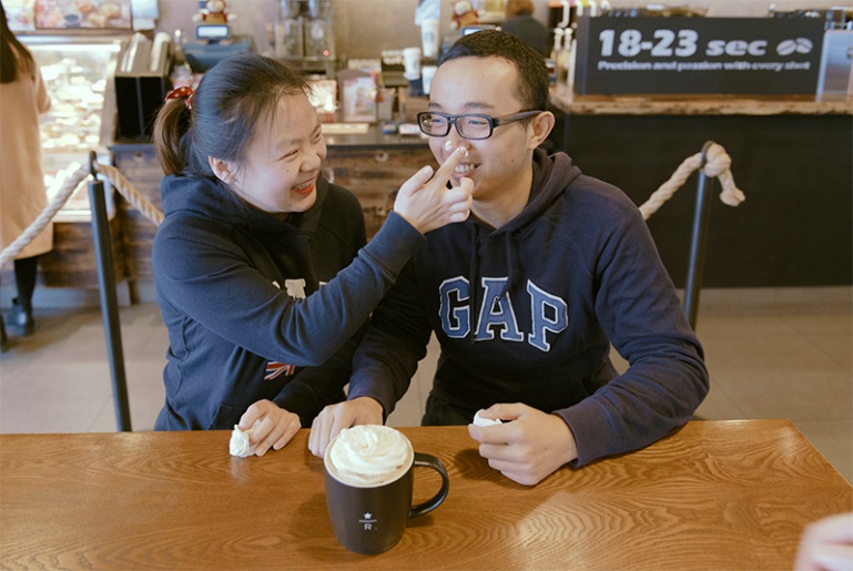 在進(jìn)入星巴克之前,Coral?和Mike是校園情侶了。從相戀到畢業(yè),先后進(jìn)入星巴克成為“伙伴”,再到攜手走入婚姻殿堂——星爸爸見證了他們由青澀到成熟。