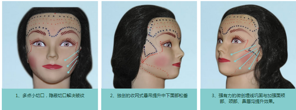 歸納起來,可調(diào)式微升美的三大核心就是多點(diǎn)小切口;隱蔽切口解決皺紋獨(dú)創(chuàng)的收網(wǎng)式懸吊提升中下面部松垂;強(qiáng)有力的微創(chuàng)埋線鞏固與加強(qiáng)面頰部、頸部、鼻唇溝提升效果。