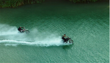 除了同類型影片常見的生死時(shí)速的飆車特技和激烈的槍戰(zhàn),電影《極限特工:終極回歸》還致力于將人類身體潛能發(fā)揮到極致,為觀眾帶來(lái)更加震撼的觀影體驗(yàn)?!稑O限特工:終極回歸》不再局限于陸地飆車,而是打破空間限制,將山地越野摩托狂飆入海,通過(guò)巧妙的改裝,讓范·迪塞爾和甄子丹用摩托車在海上玩起了破浪追逐。不僅如此,高樓酷跑破窗國(guó)家安全會(huì)議室、腳穿滑橇一躍而下做自由落體運(yùn)動(dòng)、借助山勢(shì)在高山叢林中穿梭速降、超快速花式滑板等等都讓觀眾腎上激素飆升。這些極限特技場(chǎng)景已經(jīng)不僅僅是打破空間界限,同時(shí)也挑戰(zhàn)著速度的極限。