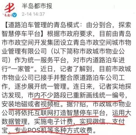 目前,投資上億元的青島市智慧停車平臺(tái)投入試運(yùn)行,通過app就可以預(yù)約停車位!由青島市政空間城市物業(yè)管理公司統(tǒng)一管理。