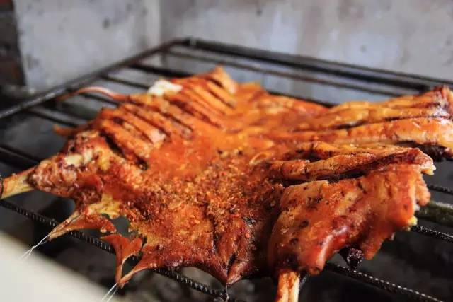 用特制的醬料在火上不斷翻烤著,肥油不斷溢出,黃亮焦嫩的香豬肉搭配一杯青稞酒,一個(gè)字,爽!