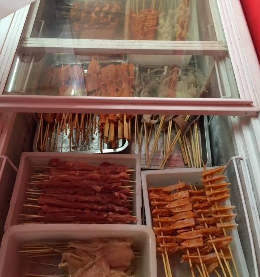 有20年歷史的炸串,從小推車到門(mén)店,種類也是應(yīng)有盡有!而且每張桌子上都有醬料盒,四種醬,甜醬、辣醬、五香咖喱醬、果醬。辣醬特別特別辣,比在很多家川菜店的都要辣!超級(jí)過(guò)癮!