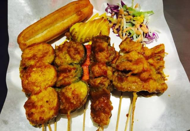 炸串種類特別多,炸的挺快,賣(mài)相很好,一看就是好油,醬有四種口味,蒜蓉醬不錯(cuò)呢。整體都很好吃,食材新鮮,油好,吃著放心。