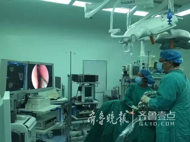 ????孩子情況危急,必須迅速進行手術,但是,采用何種方式手術成了難題,對于一個兩歲的孩子來說,做開顱手術無疑傷害巨大,要通過切開顱骨的方式取異物,孩子需要面臨修復、感染等重重關卡的考驗。如果不開顱,孩子顱內的筷子是否插入了血管就不得而知,如果貿然取出,很可能會大出血。經過會診,專家們決定由耳鼻喉科進行手術,神經外科和眼科醫(yī)生保駕護航,共同進行手術,以便出現(xiàn)突發(fā)情況第一時間處置。經過充足的術前討論和準備,醫(yī)護人員決定進行內鏡下的微創(chuàng)手術將異物取出。