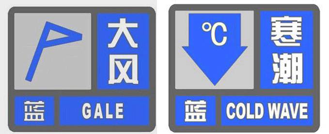 ????大風(fēng)藍(lán)色預(yù)警信號(hào)、寒潮藍(lán)色預(yù)警信號(hào)。