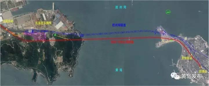地鐵1號線地鐵過海隧道起自黃島區(qū)瓦屋莊站,線路沿既有膠州灣隧道東側(cè)向北下穿膠州灣灣口海域后,接入 青島主城區(qū)貴州路站。
