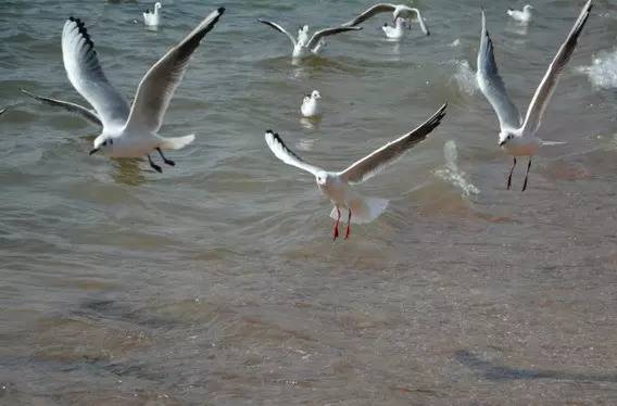 ????海波蕩漾,海鷗沾水掠過,你心可也蕩漾?風來,吹皺了海面。這些紅腳的鳥兒,看著來來往往的行人,以鳴叫示歡喜。