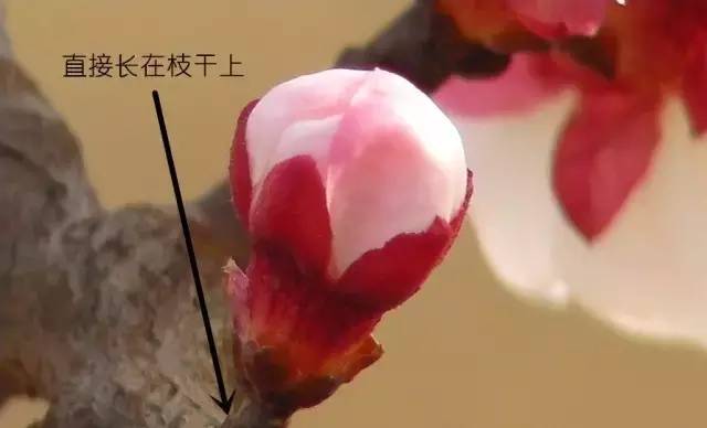 桃花都沒有軟花托,花朵直接長在枝干上,如下圖所示: