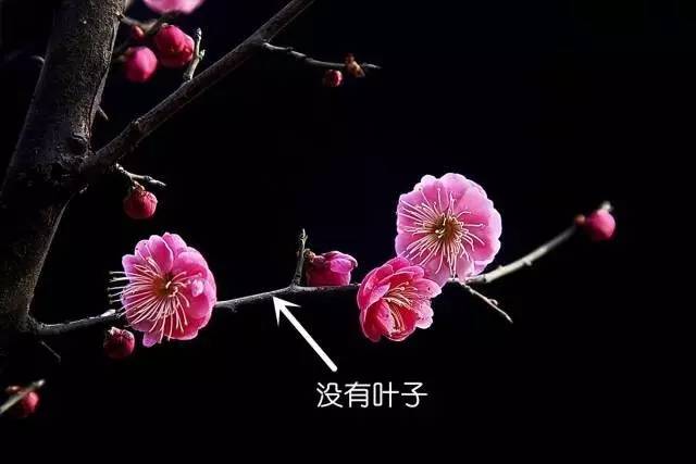 而梅花開花時,樹枝上是沒有葉子的,如下圖所示: